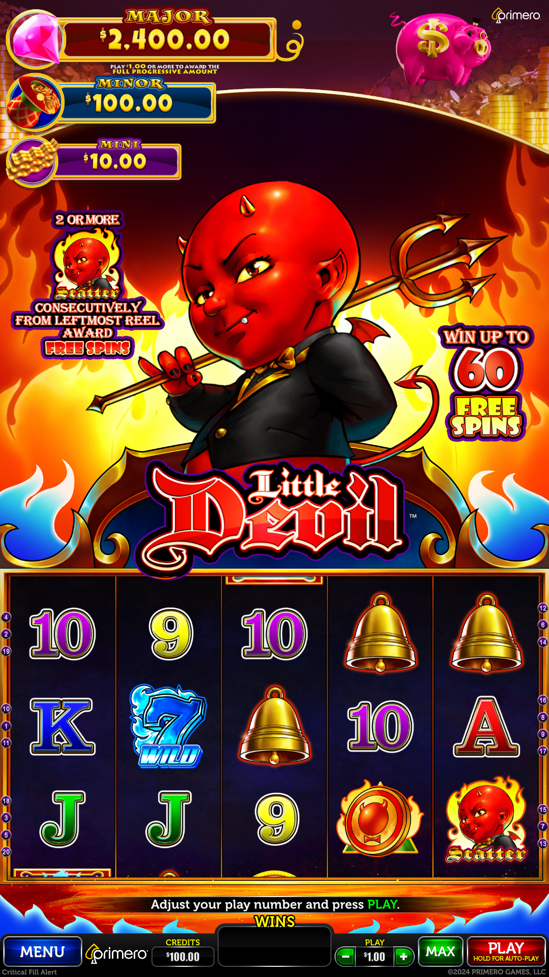 Little Devil – 5 Reels 20 lines, Up to 60 free spins.